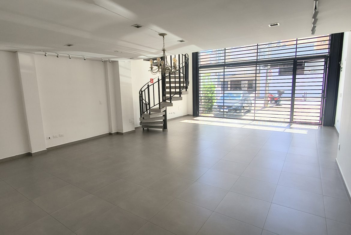 Loja Comercial c/ 115 m², sendo 74 m² térreo e 41 m² Mezanino, no térreo tem Copa e Banheiros M/F., piso de cerâmico, preparação para Ar condiciona Split, no Mezanino tem Copa e Banheiro, mais 3 divisões de sala em drywall c/ portas. Pintura Nova e grade de proteção de ferro.
